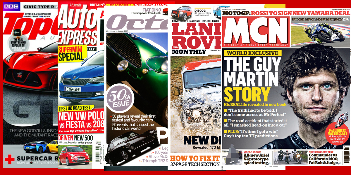 I’m an experienced editor and project manager with strong subbing and production skills. My roles have included 12 years as staff sub and deputy production editor on Auto Express – Britain’s biggest-selling automotive weekly – and editing Aston Martin‘s in-house publication and RoadSmart, the member magazine for IAM RoadSmart. For the latter I achieved a Highly Commended accolade in The Guild of Motoring Writers’ Editor of the Year 2016 awards. Further publications that have utilised my subbing and production-management experience include Magneto, Octane, Top Gear, The Week Junior, The Road Rat, Motorcycle News and customer magazines for the likes of Shell, Honda, Triumph, Land Rover, Fiat and Volvo. Scroll through the slideshow above to see just some of my clients.